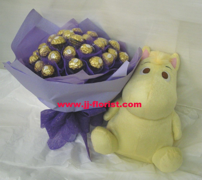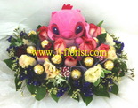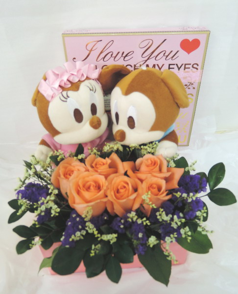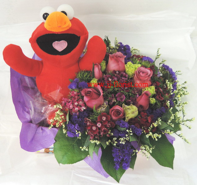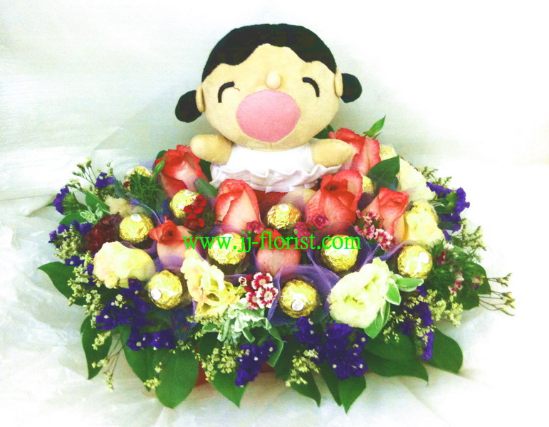 公仔010: 夢幻之旅 小:$680 中:$780 大:$880 (玖瑰 : 紅、粉、紫、香檳、白等) (糖型花籃)
