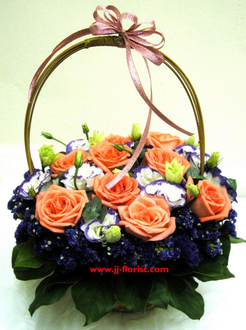 (玖瑰 : 粉、紅、紫、香檳、白等) (糖型花籃)
